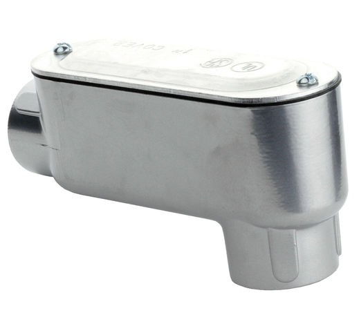 Conduit Body (Type LB)s are used to gain access to the interior of a raceway for wire pulling, inspection, and maintenance where the raceway changes direction. Type LB conduit bodies have a rectangular body and make 90° elbow connections. They have 1 outlet that allows access to the wire and cable inside. Flat back design for easy mounting close to walls. Assembled with neoprene gasket and stamped cover. Die cast from high-strength, corrosion and weather resistant, copper-free aluminum alloy.