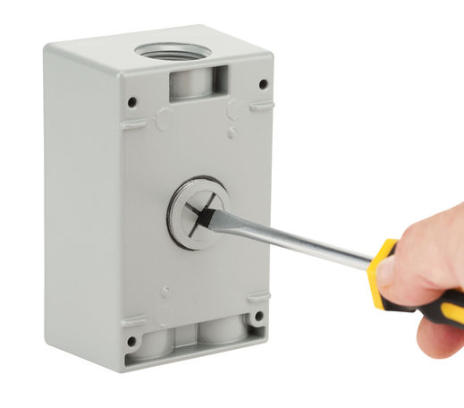 Threaded closure plugs are used to seal off unused outlets. Plugs are for use with Weatherproof boxes. They are also for use with extension rings.